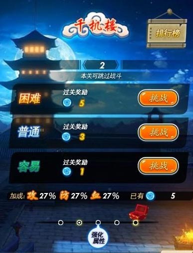 1. 挑战千机楼暴击和速度属性是排在第一位的,暴击是堆得越高越好,速度一般有个加成效果就不错了,除非你的阵容整体速度偏慢,或者整体防御很高,能把战斗拖得时间比较久,否则速度没必要累加。