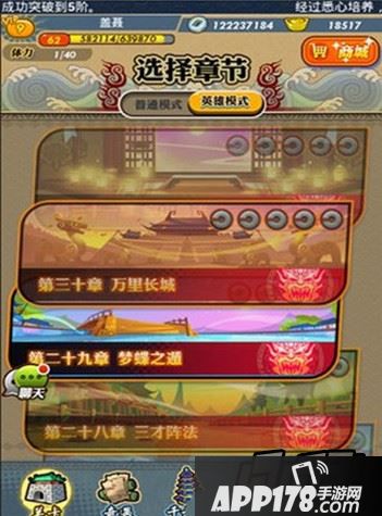 英雄关卡类似于副本,又比副本挑战性更大,通关需要体力,完成指定成就通关后可获得相应奖励。首先,普通模式的关卡越高,那么英雄模式的关卡章节也越高。英雄关卡每天有一次免费挑战的机会,每次挑战都需要10体力,需要提醒小伙伴一点,通关失败也是会扣除体力哒~