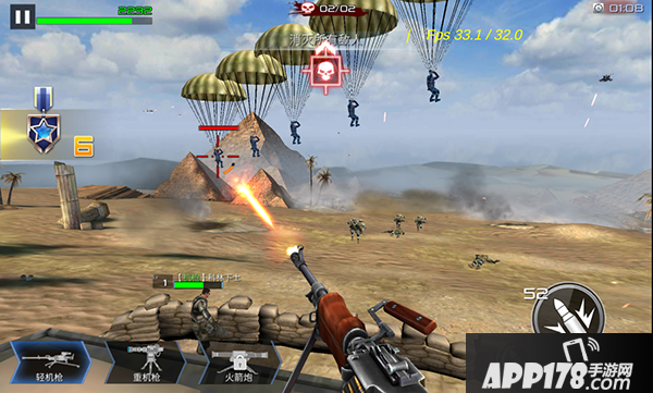 紧接着敌人有一招从天而降的战术,那伞兵从空中缓缓落下,不用着急,科林下士和聪明的你,能够在他们落地前便将他们击败。