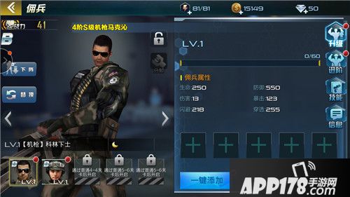 抢滩登陆3D里有多种不同类型的佣兵,如何利用每个佣兵的能力,来发挥出他们各自的优势是每个新手玩家必须思考的事情!新手玩家的第一个佣兵是科林下士,他会在新手任务早期加入你的队伍,作为一个机枪手,他的特点是火力猛,但是身板脆弱。