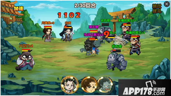 这款游戏采用的是横版回合制式的战斗形式,Q萌的画风既让人觉得可爱,又不会失去犬夜叉经典的味道,特效打击感十足的战斗画面也是让人眼前一亮,我们来看看它的最为主要的战斗玩法~