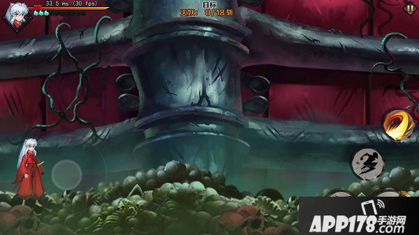 好的,作为主角光辉的犬夜叉-觉醒也就是小弟我出厂了,大家可以看到造型是非常的犀利,眼神是如此刚毅,脾气是如此火爆,恩?怎么不押韵了……好,这不是重点,关键可以看到我们目标是要消灭到18波,不是18个,怪物