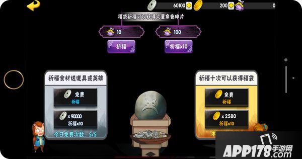 除了这两个常见途径之外,还有一种方式能否获得碎片,那就是祈福,金币抽奖送福袋,福袋开取会大量出人物碎片。如果实在穷的话,免费抽一次也会惊喜的。