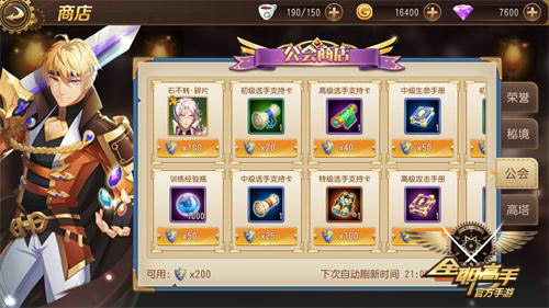 除此之外,通过一系列的公会活动可以获得“个人贡献”积分,个人贡献”积分可以再在公会商店兑换成道具奖励,账号卡碎片、选手支持卡、技能手册等实用道具应有尽有,让你纵横荣耀世界。