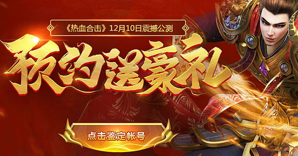 本次预约活动时间为2018.12.03至2018.12.09,任意新老平台用户均可在活动页面进行帐号鉴定,玩家可凭帐号级别获取相应数量的元宝,《热血合击》公测后元宝将发放至帐号创建的第一个游戏角色的邮箱中。