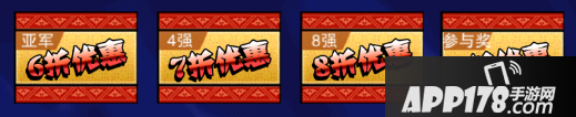 参与者、八强、四强等均有不同的折扣商店!