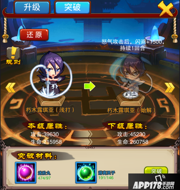 进阶到+10之后,就可以使用进阶丸突破进阶(初始境界-浅打境界-始解境界-卍解境界)