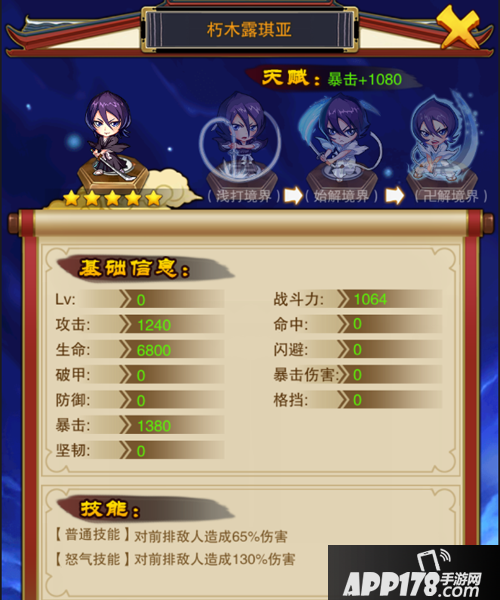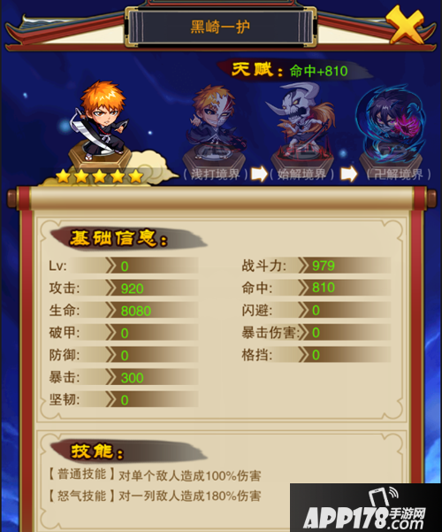 可以看出一护是单体攻击的,技能伤害是比较高的,而露琪亚是前排群体攻击的,伤害和血量也是略低一点的,怎么选择就看各位自己的喜爱咯~