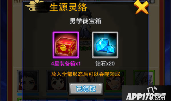 你想领取宝箱的话。就需要吞噬消耗该人物,吞噬之后就有奖励了,而且属性加成也一直在的哦。