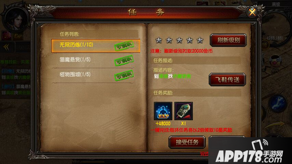 ②每日任务:前期后期主要经验获得之一,此类任务出现的环数略多,还能获得丰富的经验和绑定元宝。