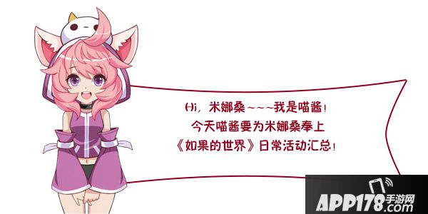 Hi,米娜桑,这里是喵酱!爱生活爱爆料的小吃货一枚!《如果的世界》已经正式公测了哟!开服不断,福利不断,还有海量精彩活动等着米娜桑来体验~喵酱在这里总结了目前游戏开放的活动日常,也算是给米娜桑的探险之旅做一点小小的贡献~~(ง •̀_•́)ง