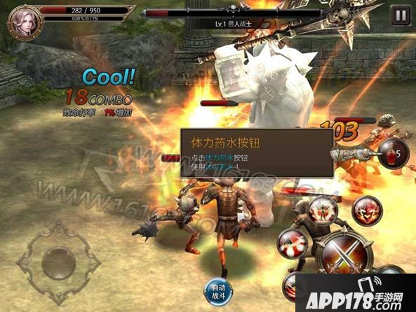 在战斗中可点击画面右方的红色生命药水及时补充生命: