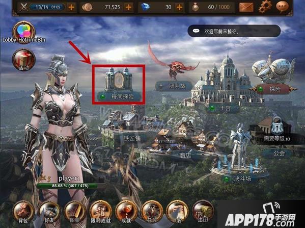 首先我们需要在主界面中选择“每周探险”图标: