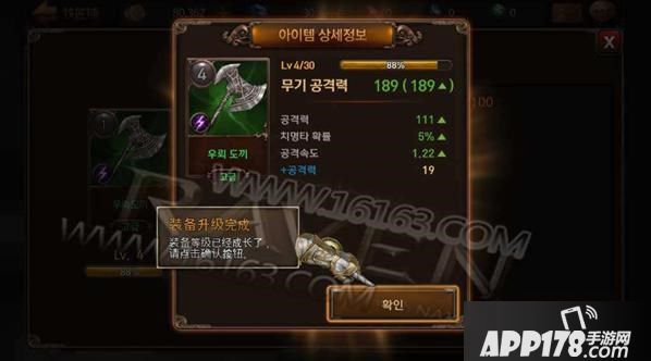 点击"确认"使装备开始升级;