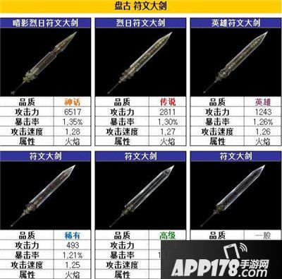 符文大剑携带火焰属性攻击,属性比较均衡,在刷图时候可以主要用符文大剑。