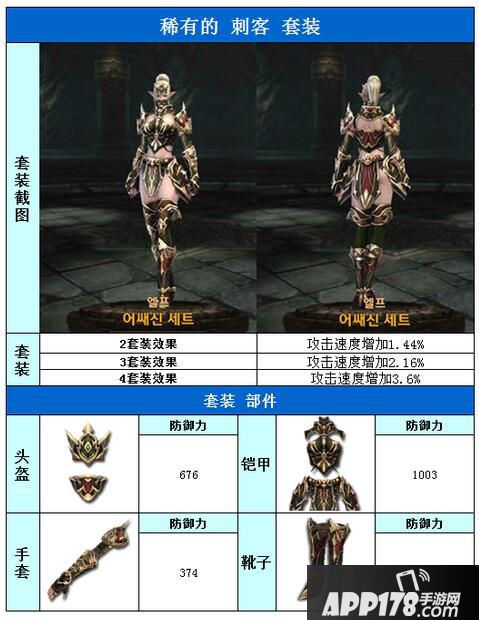 以上就是raven掠夺者精灵稀有刺客套装属性图鉴的全部内容,希望能给喜欢稀有刺客套装的小伙伴们带来帮助。更 多相关攻略稍后送上~请继续关注APP178手游网~更多精彩期待你的分享~