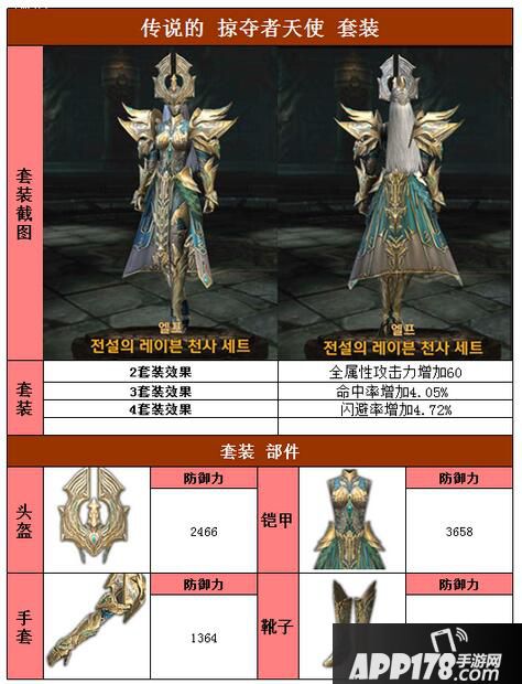 以上就是raven掠夺者精灵传说天使套装属性图鉴的全部内容,希望能给喜欢传说天使套装的小伙伴们带来帮助。更 多相关攻略稍后送上~请继续关注APP178手游网~更多精彩期待你的分享~