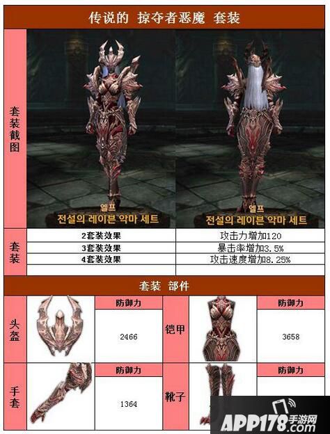 以上就是raven掠夺者精灵传说恶魔套装属性图鉴的全部内容,希望能给喜欢传说恶魔套装的小伙伴们带来帮助。更 多相关攻略稍后送上~请继续关注APP178手游网~更多精彩期待你的分享~