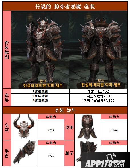 以上就是raven掠夺者盘古传说恶魔套装属性图鉴的全部内容,希望能给喜欢传说恶魔套装的小伙伴们带来帮助。更 多相关攻略稍后送上~请继续关注APP178手游网~更多精彩期待你的分享~