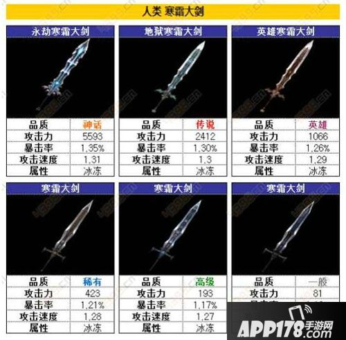 以上就是raven掠夺者寒霜大剑属性图鉴的全部内容,希望能给喜欢寒霜大剑的小伙伴们带来帮助。更 多相关攻略稍后送上~请继续关注APP178手游网~更多精彩期待你的分享~