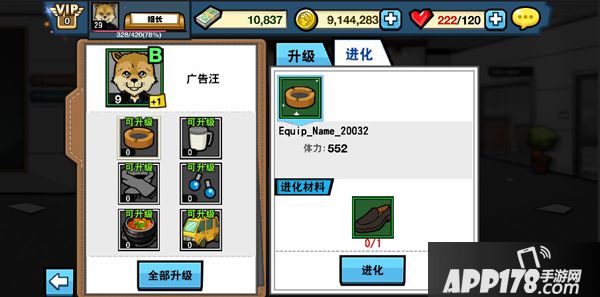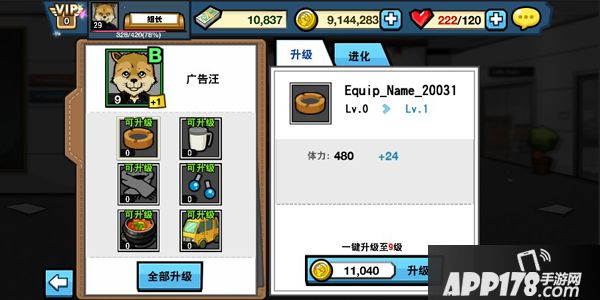 玩家可以通过消耗游戏币提升职员装备等级,装备等级不能超过职员当前等级。
