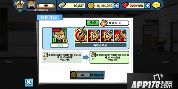 当职员星级得到提升后,可以对技能进行升级操作,技能升级需要消耗四大禁书。技能升级会提升技能强度,当技能升至满级后,还会获得特殊效果加成。