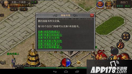 同时,此次白日门地图还新添了NPC神秘书商(35,20),玩家可以使用白日门宝箱掉落的白日门残卷在此兑换狂风斩、流星火雨、召唤神兽等各职业的高级技能书。只要集齐100张,即可免费兑换,从此以后,妈妈再也不用担心我没有高级技能书了。