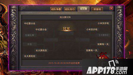 《热血传奇手机版》5v5战队争霸淘汰赛4进2即将在10月28日火爆开战,哪个团队能冲破层层对决,站上最高的颁奖台,获得第一届争霸赛的冠军宝座?你心目中的第一战队又是谁?一起来期待接下来更加精彩的竞技争霸赛吧!
