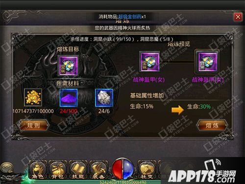 装备熔炼可以提升装备属性,增加装备和角色战斗力。在游戏中每个部件、每个等级的装备熔炼材料都是不同的,下面来看看战士的衣服战神盔甲(及其他同等级盔甲)从生铁熔炼到白银需要多少材料吧。