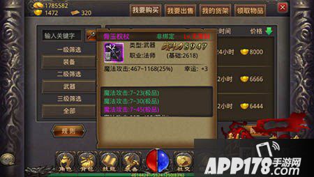 强化值12的骨玉权杖属性还是非常高的,在配合上3个不错的鉴定属性时魔法攻击能够达到488-1266点,战斗力也即将突破6000点,不过售价确实太贵了一点。
