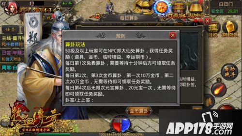 随着《热血传奇手机版》公测的临近,素有神算子称号的郑大仙也不甘寂寞,在白日门摆起了摊算起了卦为各路英雄豪杰占卜天机。那么怎么参加算卦活动,活动又有哪些收益呢?一起来看吧!