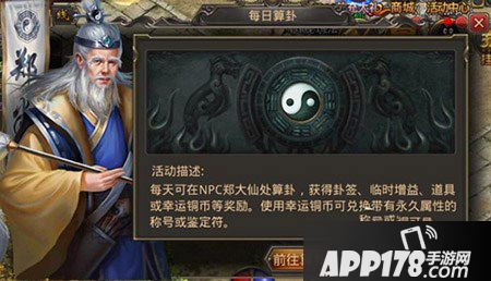 4. 算卦获得的幸运铜币也可在NPC郑大仙处兑换称号或鉴定符。