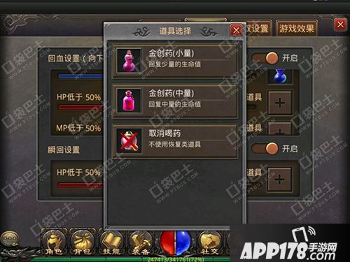 我们知道,以前的版本设置了自动喝药,这个药就不能取消,一直在上面特别烦,除非用其他药去替换,但是前期设置的药用不到,也不方便替换,只能把血量设置为最低,对于强迫症来说实在是碍眼,所以新版本增加了取消自动喝药的功能。