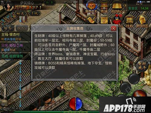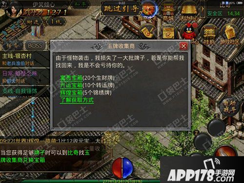 玉牌分为生财牌、转运牌、锦绣牌,均在野外地图中杀怪掉落获得。搜集不同的牌子可在比奇城内NPC玉牌收集商处兑换相应宝箱,开启宝箱获得大量奖励。那么玉牌具体在什么地方获得呢?