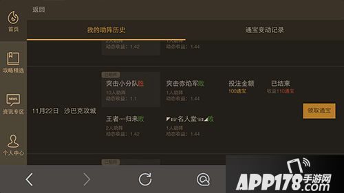 进入我的助阵历史,即可领取所赢取的通宝。