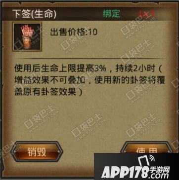 今天介绍的是算卦得到的卦签,卦签会提升临时属性,还能提升战力,虽然都是临时的,但是多达两个小时,还是不错的。那么下面就来看看下签生命提升的属性吧。