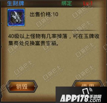 生财牌获得:击杀40级以上的怪物有几率掉落。可以专门去收集,但是如果不想,也不用担心,因为除魔任务杀怪的时候有机会获得生财牌。