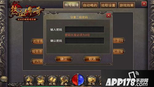 【设置二级密码】游戏内保护玩家账号以及虚拟财产的第二道数字密码,在玩家账号每次登入游戏第一次执行敏感操作时,要求进行二级密码验证(包含查看背包、角色界面等模块),通过验证后敏感操作将被放行,且之后该账号下任何角色执行敏感操作时,无须再次进行验证。帐号登出后重新登入游戏或者换大区登入游戏,执行敏感操作将重新激活二级密码验证。