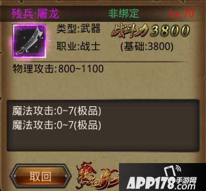 概述:残兵·屠龙与屠龙这两件武器可以拿来比对,首先两者的不同屠龙武器没有佩戴等级限制,而残兵·屠龙的佩戴等级为70级。残兵·屠龙比屠龙的基础战斗力要高出496点,虽然在基础属性上,残兵·屠龙最大物理攻击与屠龙相比减少了80点,但是最小物理攻击却比屠龙有提升328点。鉴于武器幸运值的影响,武器一般很少能打出最大攻击,所以最小物理攻击属性的提升。也让残兵·屠龙这个武器相对于屠龙而言性价比更高。