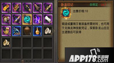【卧龙山庄】战胜卧龙的守将后,对他们的尸体进行探索有几率获得卧龙印记,进行“龙神技能凭证”兑换。有了这些意外收获,玩家们将可前往白日门神秘书商处,使用100个“龙神技能凭证”兑换80级技能书,提升各自的战斗实力。