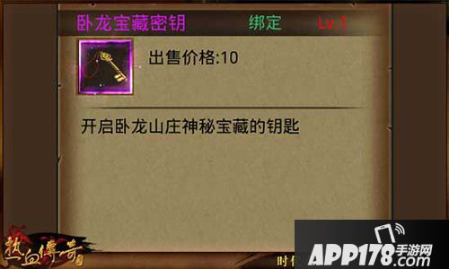 4、云游商人处不定期出售宝箱钥匙,在他那能购买到卧龙宝藏密钥。