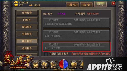 只要参与幻境沙巴克的行会成员即可激活。附加属性为:物防0-100,魔防1-100,韧性+10。