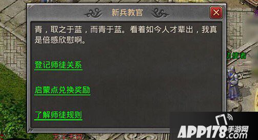 师徒两人组队前往比奇中心的“新兵教官”处登记师徒关系之后即可成为师徒。