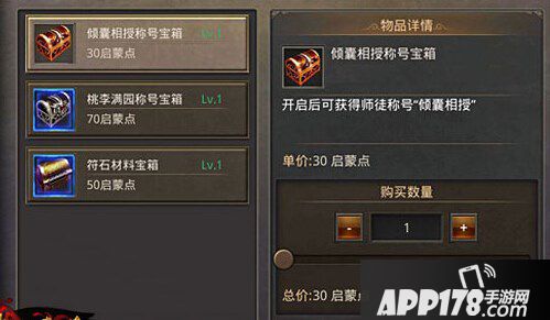 65级以上的玩家才可以收徒弟,每个玩家最多同时拥有五个徒弟,无论因为何种原因解除关系,都需冷却24小时才能再次拜师或收徒。师徒关系中,师父获得的绝对不比徒弟少,当徒弟战斗力达到3.5W、4.5W,以及成功出师,师父分别可获得1点、2点、20点的启蒙点奖励,启蒙点可激活称号“倾囊相授”和“桃李满园”,这两个称号分别需要30、70启蒙点。启蒙点也不是在激活称号之后就没用了,我们还可以兑换符石材料宝箱,每个宝箱需要50启蒙点。