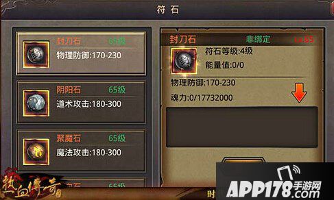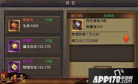 众多周知,游戏中目前开放的符石有6种,分别包括励刀石、聚魔石、阴阳石、聚血石、封刀石和破魔石。每种符石由低到高都有白色、蓝色、紫色和橙色四个品质,也就是我们常说的一级符石、二级符石、三级符石和四级符石。符石的品质越高,提供的基础属性加成也就越高。此外,开启符石第二副属性后,释放符石技能—热血燃烧也可在短暂时间内提高玩家的战斗力。