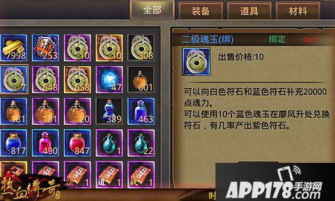 其实白色符石和蓝色符石的基本属性是无差异的,如1级励刀石和2级励刀石都是加144-240的物理攻击,其区别主要就是在开启的副属性数量上有所不同。紫色符石和橙色符石所提供的基础属性加成较多,且额外副属性加成也不错,所以这里建议大家可以将不需要的白色和蓝色魂石分别分解成一级和二级的魂玉用来吃魂力值,这样省时省力,性价比也比较高。