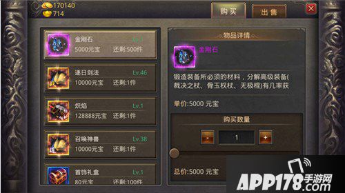2、除了分解装备获得,还有一个方法就是在云游商人处购买到金刚石。云游商人在盟重地图的中心位置,每天12:00和18:00两个时段刷新所售物品。玩家每日最多可在云游商人处购买10个金刚石,通过此方式可以快速的获得金刚石。