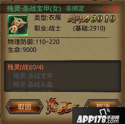 概述:残灵装备也可以用以和圣战装备比对,和其他残系装备一样,残灵装备也是有等级限制的。残魂装备装备的基础战斗力要比圣战装备高,但装备属性要差一点。装备4件残灵装备可以获得非常不错的属性加成。