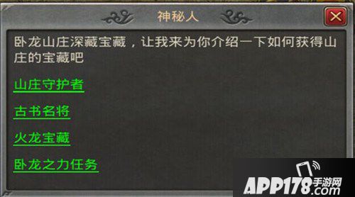 击败五处名将后,卧龙庄主将在(70,35)出现,战胜并探索庄主遗骸获得庄主令牌。将五色夜明珠以及庄主令牌交给卧龙山庄神秘人NPC(199,149)完成卧龙之力任务便可永久提升自身能力一次。