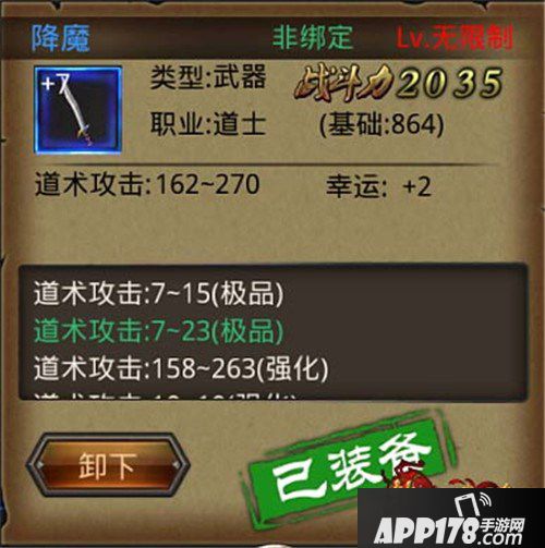 在《热血传奇》手机版中,武器装备都会有属性区间,最小值和最大值。大家可以直接在人物界面看到装备的属性信息。使用祝福油后,在当前装备属性中会显示幸运值。幸运值越高,在攻击时武器的攻击数值会更多趋于最大值。以道士的降魔武器为例,提供的道术攻击为162-270,那么拥有高幸运值玩家的攻击数值达到270的概率越大,而低幸运值较低的玩家攻击是162-270之间随机值,伤害输出不稳定。